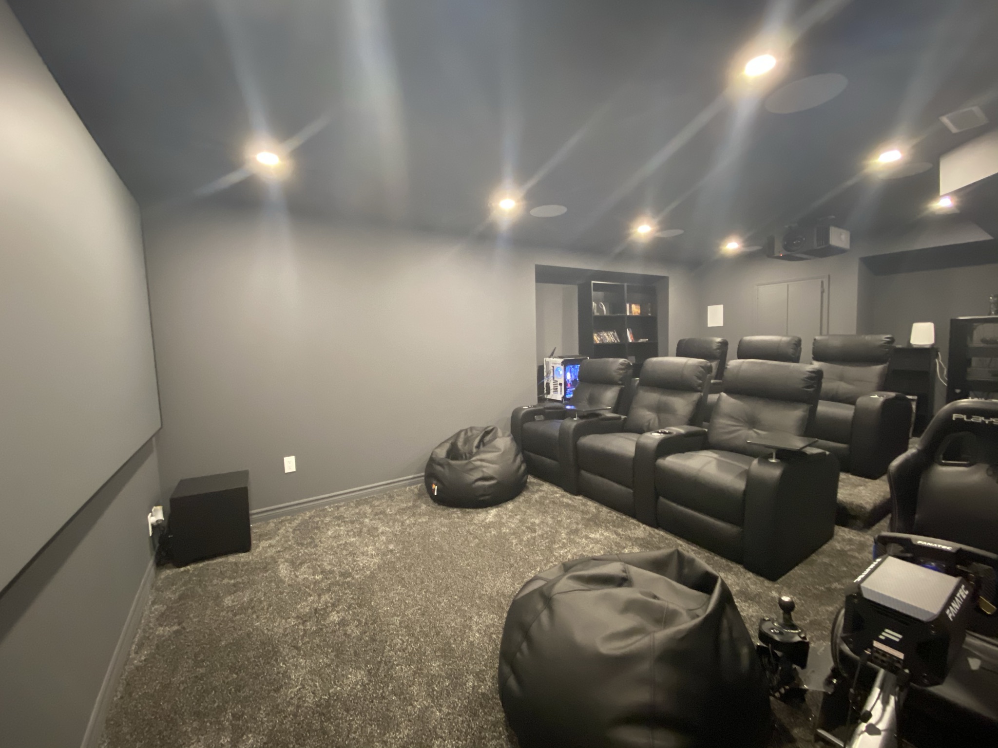 Have a look at this basement theatre. Our clients opted to add an accent colour of red to spice things up.