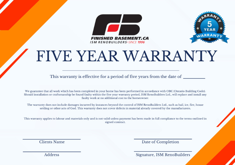 Finished Basement guarantees that all work done in your home complies with the Ontario Building Code (OBC). This reflects our dedication to quality and adherence to industry standards. By employing skilled professionals and using top-notch materials, we ensure that your basement’s renovation meets all legal and safety requirements.